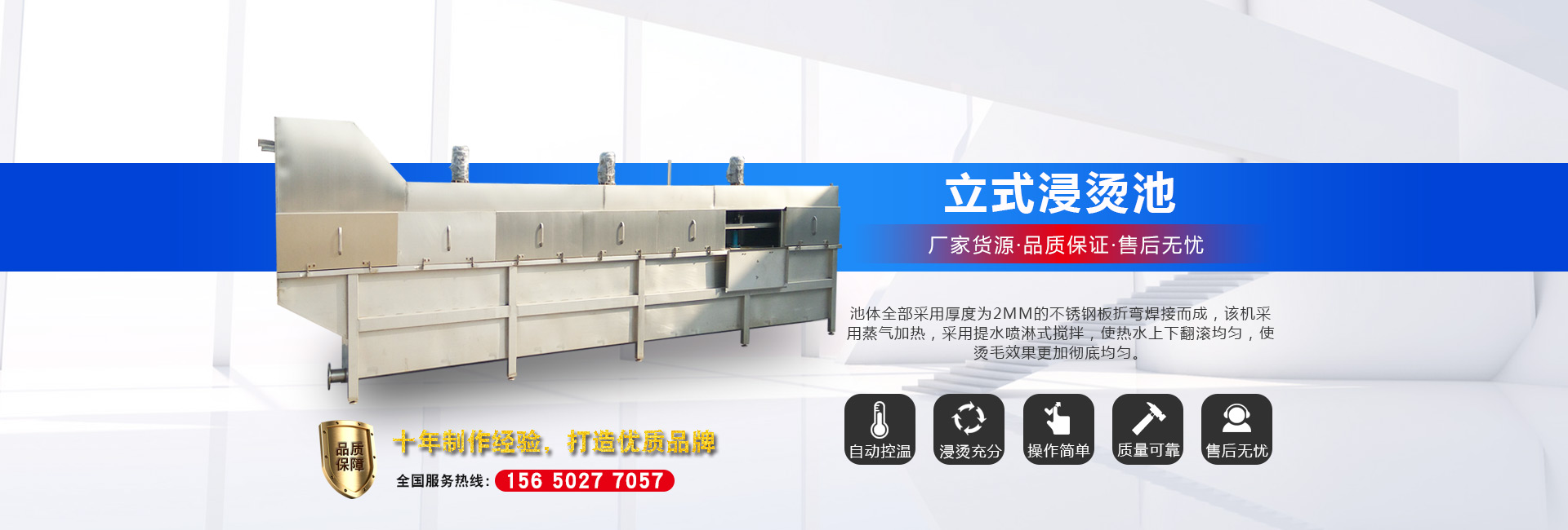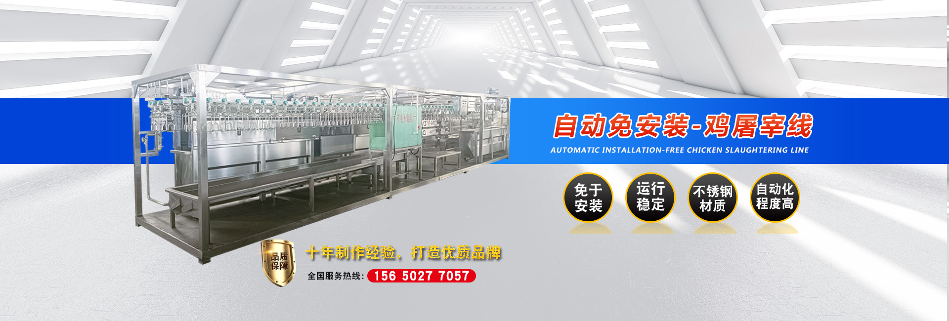 公司長期與國內外屠宰加工企業合作,走引進——消化——創(chuàng)新和自主研發(fā)相結合的道路,在國內外同類產品的基礎上,不斷更新和改造。公司主要設備有:A字型立式脫毛機、臥式脫毛機、強力噴淋機、松毛機、浸燙池、螺旋預冷機、禽籠清洗機、電暈機、兔扯皮機、兔割前爪/后爪機、剝胗機、自動洗鉤機、螺旋燙爪機、雞爪脫皮機、分割輸送帶等屠宰用設備。其中,公司獨力發(fā)明生產設計的“電動調節(jié)脫毛機”及“自動控水控溫浸燙池”順利通過知識產權局的實質性審查。公司所生產的設備 可與國外同類產品配套使用,設備遠銷阿爾及利亞、澳大利亞等中東、非州等并建立了長期穩(wěn)定的合作關系。